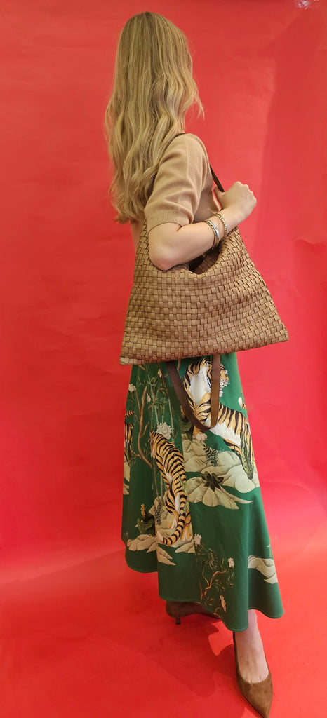 • Vorderseite geflochten, Rückseite Glattleder, Hand- und Schulterriemen Naturleder