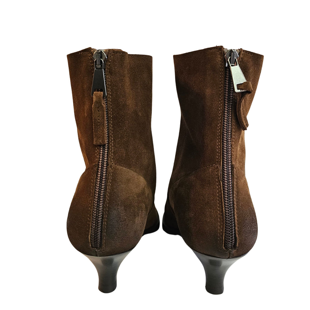 • Elegante, sportliche Wildlederstiefelette in Zigarrenfarbe