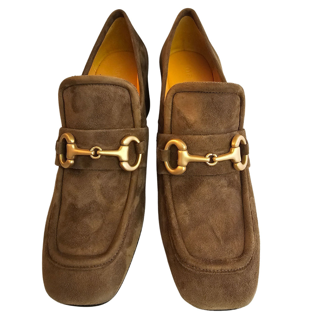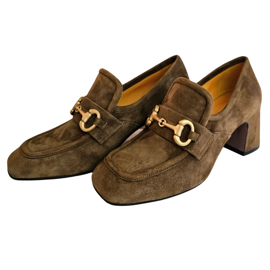 Mara Bini, Loafer aus Wildleder in Camel mit mattgoldener Zierschnalle