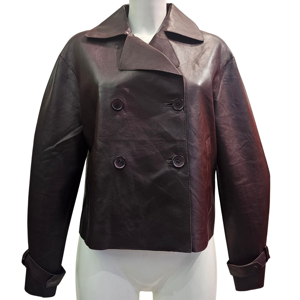 • Kurzlederjacke mit Reverkragen in Bordeaux