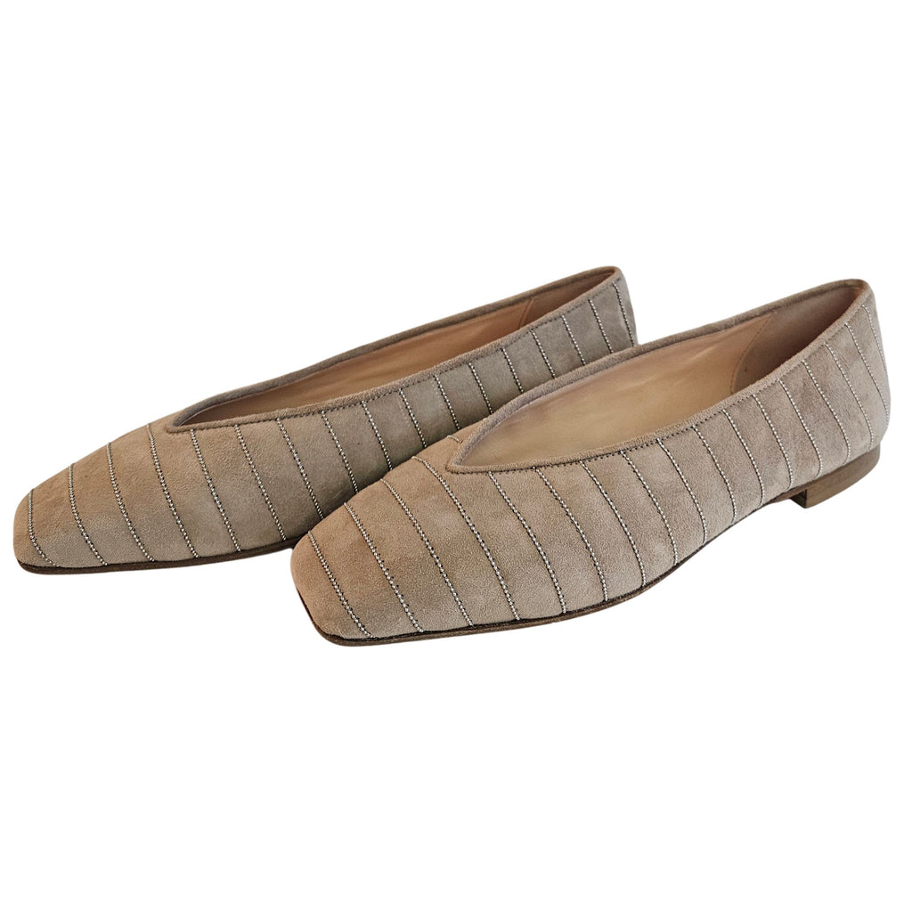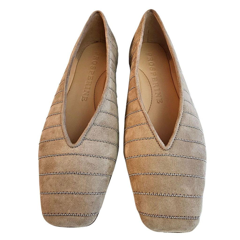 Prosperine, Wildleder Ballerina in Beige mit silbernen Zierfäden