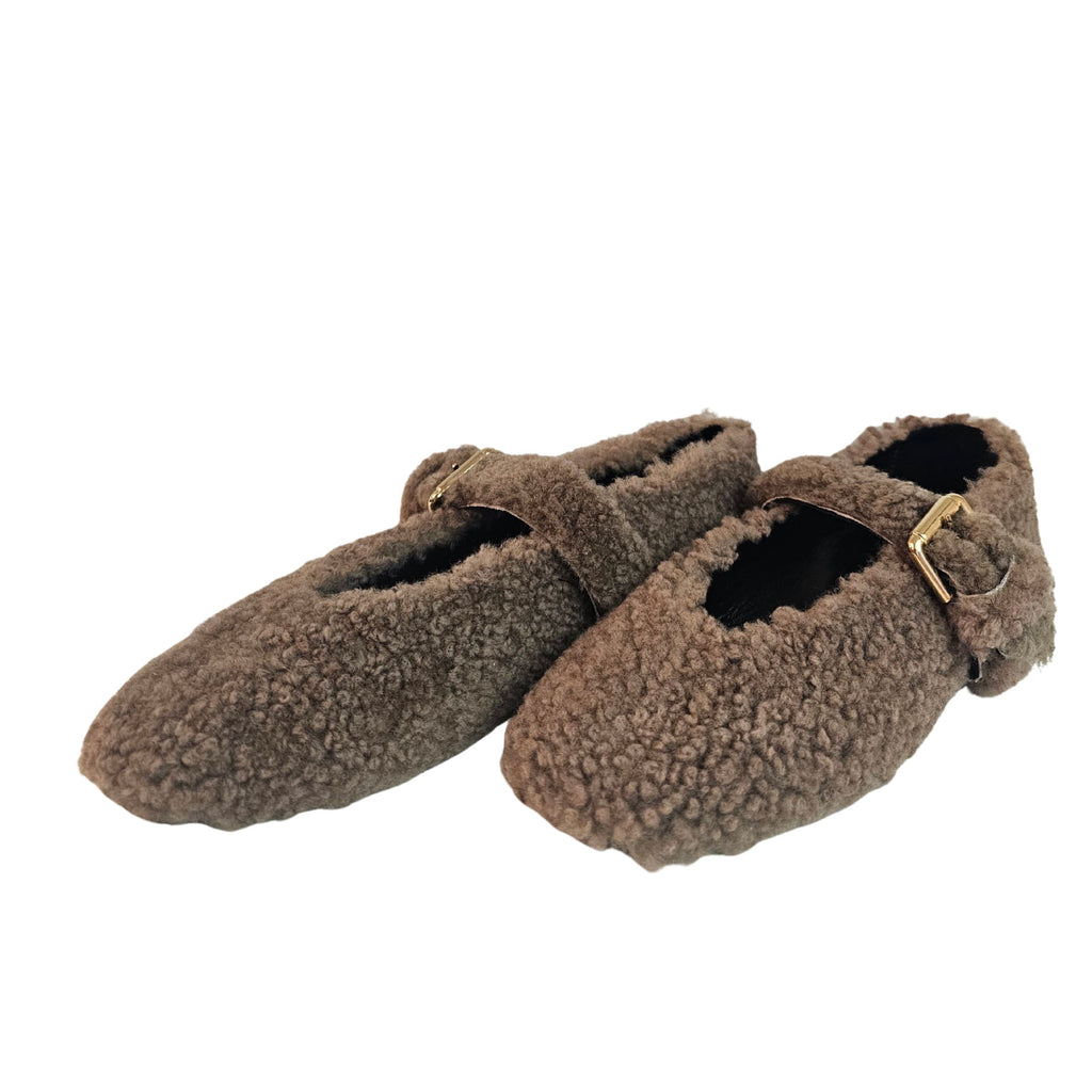 • Riemchenschuh mit echtem Lammfell in Taupe