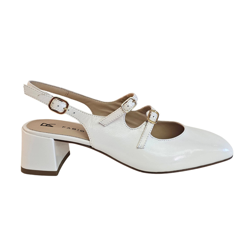 Fabio Rusconi, Sling-Lackschuh mit verstellbaren Riemchen in Weiß