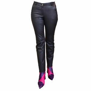 • Dunkelblaue Lederhose aus Stretchleder mit Eingriffstaschen