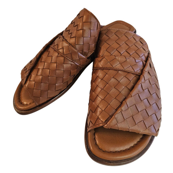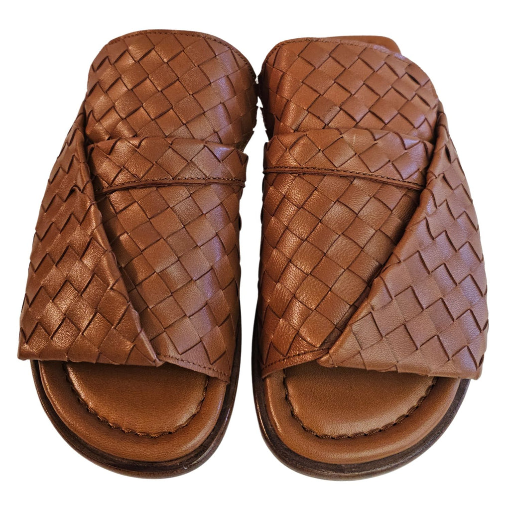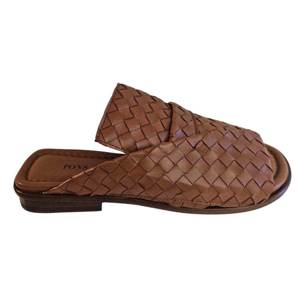 Pons Quintana, feine Flechtleder-Pantolette in Brandybraun